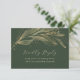 An elegant gold greenery leaf on a dark green wedding rsvp response card.. Simply personalize this with your own wedding details and website to make it your own.