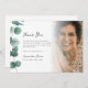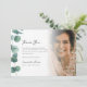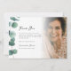 Elegant watercolor eucalyptus celebration of life thank you card with a personalized photo and message.