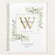 Elegant watercolor greenery monogram name 2023 planner featuring a gold monogram initial. Designed by Thisisnotme©