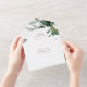 All in One Wedding invitation featuring elegant greenery. Each card includes a perforated RSVP card that’s addressed and ready for your guests to send back in the mail. Customize with your information or click "click to customize further" to change the font style, size, colour or background colour.