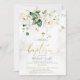 Elegant Greenery White Floral Gold Cross Baptism Invitation
