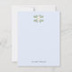 Personalized, elegant flat note card on pale blue background featuring Hand drawn watercolor greenery and citrus with Monogram. Makes great gifts.