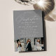 Invite guests to celebrate the grad with our elegant photo graduation party invites! The design features a modern calligraphy script with your graduation party details displayed in white lettering against a silver-grey background. The unique graduation party invites feature three photos in a row at the bottom of the design. The multi-photo graduation invite reverses to display a simple grey and white diagonal stripe pattern.