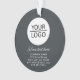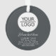 Elegant Anthracite Grey Add your Logo with Custom Text Company Promotion Ornament. Insert your logo into the template and customize the text, company name, address and contact information on the front and on the backside. Business promotion or giveaway for your clients and business partners.