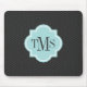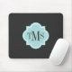 Elegant grey and teal 3 letter monogram mouse pad