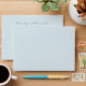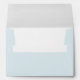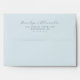 This wedding envelope features a clean, minimalist design with an elegant cursive script for the names and a classic serif font for the address details. The layout is centred on a light blue background, creating a serene and sophisticated look. With its simple typography and ample negative space, this design exudes a calm and refined mood, perfect for formal occasions like weddings. The customizable text allows you to personalize it effortlessly, making it ideal for your special day.
