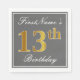 Elegant Grey, Faux Gold 13th Birthday; Custom Name Napkin