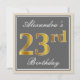 Elegant, Grey, Faux Gold 23rd Birthday + Name Invitation