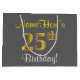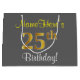 Elegant, Grey, Faux Gold 25th Birthday + Name Large Gift Bag