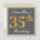 Elegant, Grey, Faux Gold 35th Birthday + Name Invitation
