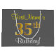 Elegant, Grey, Faux Gold 35th Birthday + Name Large Gift Bag