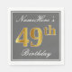 Elegant Grey, Faux Gold 49th Birthday; Custom Name Napkin