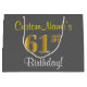 Elegant, Grey, Faux Gold 61st Birthday + Name Large Gift Bag