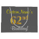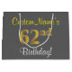 Elegant, Grey, Faux Gold 62nd Birthday + Name Large Gift Bag