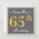 Elegant, Grey, Faux Gold 65th Birthday + Name Invitation