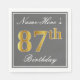 Elegant Grey, Faux Gold 87th Birthday; Custom Name Napkin