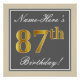 Elegant, Grey, Faux Gold 87th Birthday + Name Poster