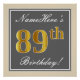 Elegant, Grey, Faux Gold 89th Birthday + Name Poster