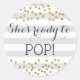 Baby shower round stickers "She's ready to Pop" featuring white and grey stripes and faux confetti glitter. You can use these for bags of popcorns, small champagne bottles or other guest favours of your choice. Complete your theme with matching invitation, signs, decorations and more from our Light Grey and Gold Collection.