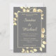 Elegant grey golden leaves wedding invitation