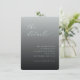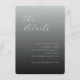 This wedding enclosure card features a minimalist and elegant design with a gradient background transitioning from light to dark grey. The phrase "the details" is prominently displayed in an italicized, cursive script font at the top, while additional information is presented in a clean, sans-serif typeface below. The layout emphasizes simplicity and clarity, using ample negative space for a sophisticated look. Perfect for conveying essential event details, this card exudes a modern and understated style, ideal for formal occasions.