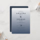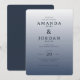 This elegant wedding invitation features a minimalist design with a gradient background transitioning from light grey to deep blue-grey, creating a serene and sophisticated atmosphere. The layout is vertically oriented with centred alignment, emphasizing key elements through size and spacing. Classic serif typography adds formality, while the absence of decorative motifs keeps the focus on refined typographic elegance. Perfect for a formal gathering, this invitation conveys anticipation and timelessness, ideal for couples seeking a simple yet luxurious aesthetic.