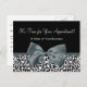 Elegant black and white leopard print hair and beauty salon appointment reminder postcards with a stylish grey ribbon tied into a chic bow. Personalize this animal print design by adding your boutique name and contact information. Flat printed image, not actual ribbon.