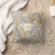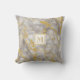 Elegant Grey Marble Monogram Faux Gold Glitter Throw Pillow