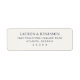 This return address label features a clean, minimalist design with centred text on a white background. The layout is simple and elegant, utilizing a modern sans-serif font in a dark grey hue for clarity and sophistication. Each line of text is evenly spaced, creating a balanced and orderly presentation that exudes professionalism and refinement. Ideal for formal occasions or professional contexts, this label combines functionality with an aesthetically pleasing look.