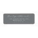 This return address label features a minimalist design with a centred layout on a solid grey background, creating an elegant and modern aesthetic. The monochromatic colour palette of light grey and white text provides a subtle contrast against the darker backdrop, emphasizing clarity and sophistication. The typography combines a cursive script for names with a classic serif font for addresses, offering both personalization and readability. Ideal for formal or professional use, this label conveys organization and precision while maintaining a refined and polished look.