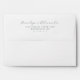 This wedding envelope features a minimalist design with a clean, white background and a soft grey colour palette. The typography combines elegant cursive script for the names with a modern sans-serif font for the address, creating a sophisticated and contemporary look. The layout is simple and balanced, utilizing ample negative space to enhance readability and convey an understated elegance. Perfect for couples seeking a refined and timeless aesthetic for their special day.