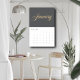 Elegant Grey Minimalist| Gold Script Letters Calendar