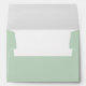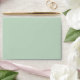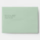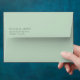 This wedding envelope features a minimalist design with a clean, centred layout. The colour palette is monochromatic, utilizing shades of soft green that create an elegant and understated aesthetic. The typography is classic serif, emphasizing readability and formality, perfect for conveying sophistication in your correspondence. Ideal for weddings or formal events, this design focuses on clarity and simplicity, ensuring your message stands out with professionalism and grace.