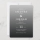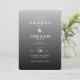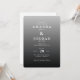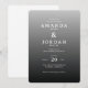 This elegant wedding invitation features a minimalist design with a gradient background transitioning from light to dark grey, creating a sophisticated and modern look. The clean serif typography is centred for a balanced composition, enhancing readability and formality. With its understated grayscale palette and crisp digital print, the invitation conveys an atmosphere of refinement, perfect for couples seeking a timeless and classy aesthetic for their special day.