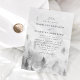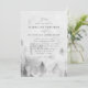 Elegant, winter wedding invitation display your names and wedding details in black text against a background of misty grey pine trees and mountains. The winter wedding invites feature a beautiful modern calligraphy script. The unique wedding invites reverse to a dark charcoal grey watercolor background. Designed to coordinate with our Elegant Winter Forest wedding collection.