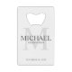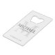 Ajoutez une touche personnelle à votre mariage grâce à l'ouvre-bouteille personnalisé des groomsmen carte de crédit. Ce ouvre-bouteille présente le nom du marionnettiste personnalisé avec titre et date mariage en gris et monogramme en gris clair comme arrière - plan, dans le style de police serif classique, sur arrière - plan blanc. Parfait aussi pour le meilleur homme, père de la mariée, porteur de bague et plus.