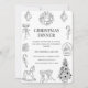 "Host your holiday gathering in style with this elegant hand-drawn Christmas dinner invitation. Featuring charming black and white illustrations of festive ornaments, trees, and holiday décor, paired with timeless typography, this modern template is perfect for family dinners, office holiday parties, or seasonal celebrations. Customize with your event details for a truly unique holiday invite."