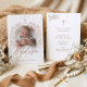 Elegant Hand-Drawn Cross Floral Baptism Photo Invitation
