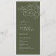 Elegant delicate hand drawn flower illustration and modern script typography details, in dark sage green and white colour, simple and romantic. Great floral wedding programs for modern rustic wedding, country garden wedding, and simple boho wedding in summer and winter.