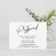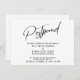 This simple suite's distinction is due to the modern, handwritten script font used for accent phrases. In this piece, the elegant script was used to create a graphic depicting the word "Postponed". Use the template fields to add your personal details and make this modern design your own. The solid background can be changed to any colour you prefer. Please reach out with any special requests or for customizing assistance. // 151 //
