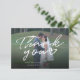 Cherish the magic of your special day with our personalized wedding thank you card, showcasing your favourite moment captured in time. This elegant card transforms your chosen wedding photo into a stunning centerpiece. Perfect for expressing gratitude to your guests, the card can be customized with your heartfelt message on the reverse side, allowing you to share a piece of your joyous celebration while conveying your appreciation. Whether you opt for a romantic sunset shot, a candid laugh, or a classic pose, this thank you card serves as a beautiful keepsake that both you and your guests will treasure for years to come.