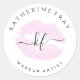 Elegant handwritten script calligraphy pink lips classic round sticker