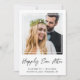 Elegant elopement or smaller wedding announcement and post-wedding reception or party celebration invitation. The front features your photo in a cut out square frame, "happily ever after" written in a modern script, and your first names, wedding date and location in simple typography. On the reverse side, you can personalize your wedding announcement in more detail, add a reception or party invitation and sign your married names in a signature-like script.