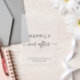 Celebrate your love in style with our elegant vellum overlay featuring "Happily Ever After" in a blend of a chic calligraphy script with swashes and simple modern typography, and your names and wedding date in classic serif typography. Pair with your photo save the dates or wedding invitations for a sophisticated and timeless combination.