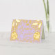 This beautifully crafted Easter card radiates elegance and charm, making it a perfect choice for spreading festive cheer. The front design boasts shiny gold foil details that catch the light and add a luxurious touch. It features intricate floral patterns and two finely decorated Easter eggs, all framing the warm and celebratory "Happy Easter" greeting in a graceful script. The delicate lavender background enhances the opulence of the shiny gold foil, creating a harmonious and sophisticated appearance. Inside, the card continues its thoughtful design with a light yellow background and a heartfelt message in purple text: "Sending wishes your way for a bright and happy Easter Day." Ideal for friends, family, or anyone you cherish, this card is a lovely way to share warm wishes and celebrate the joy of the Easter season.