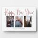 Elegant New Year's 3 photo collage greeting card. Back side has custom message and photo you can edit as well. Features red frame for photos. Designed for newly engaged couples or married couple, but can be used by families as well.