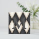 This elegant design has a large monogram on a background of a black and antique white Harlequin pattern. A trompe l'oeil effect makes the monogram pop and appear 3-dimensional. Customize the back with a message, personal header, or leave it blank for handwritten notes.