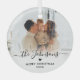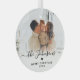 Elegant Minimalist Family Name and "Merry Christmas" text Photo Ornament. Features your favourite family photo, with handwritten calligraphy script "family name", "Merry Christmas" text, little heart motif and year in black and white (white gradient photo overlay). Easy to personalize it. Photo tip: crop your photo to square form before upload it.