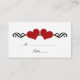 Sweet and whimsical Elegant Hearts Wedding Place Card featuring a fancy swirl border adorned with a pair of dark red hearts. This modern escort card is the perfect choice for a chic and elegant wedding. Space is provided on this product to write in the names and table numbers where each of your guests will be seated. Click "Customize It" to find additional personalization options.