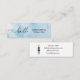 Elegant minimalist business card for beauty professionals features bold font combined with calligraphy font and modern navy blue watercolor splash background.